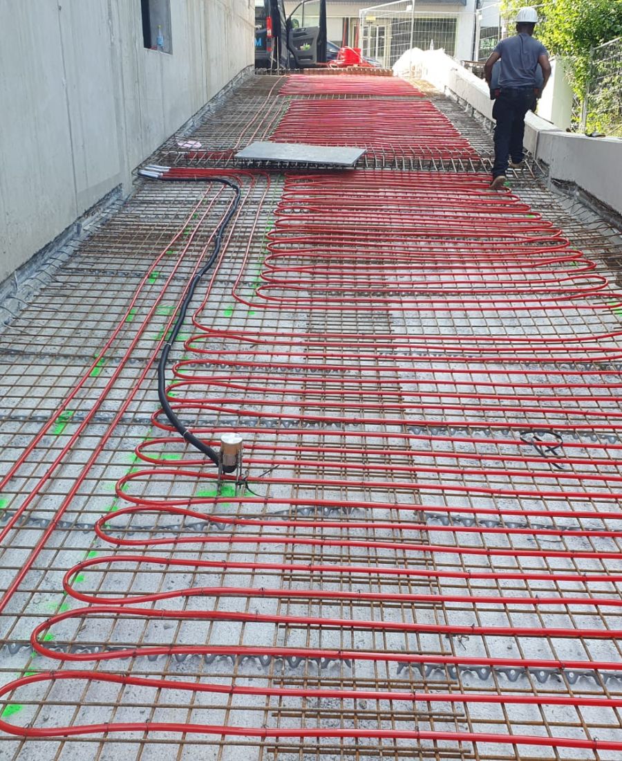 Die Freiflächenheizung von EAM EvoTherm sorgt dafür, dass Ihre außenliegenden Flächen auch in den kalten Wintermonaten sicher und frostfrei bleiben. Unsere Systeme sind speziell darauf ausgelegt, Außenbereiche wie Rampen, Gehwege oder Einfahrten vor Frost und Eis zu schützen. Mit modernster Technik und effizienter Energienutzung garantieren wir eine zuverlässige Lösung, die Ihnen Zeit spart und gleichzeitig Ihre Umweltbilanz verbessert.